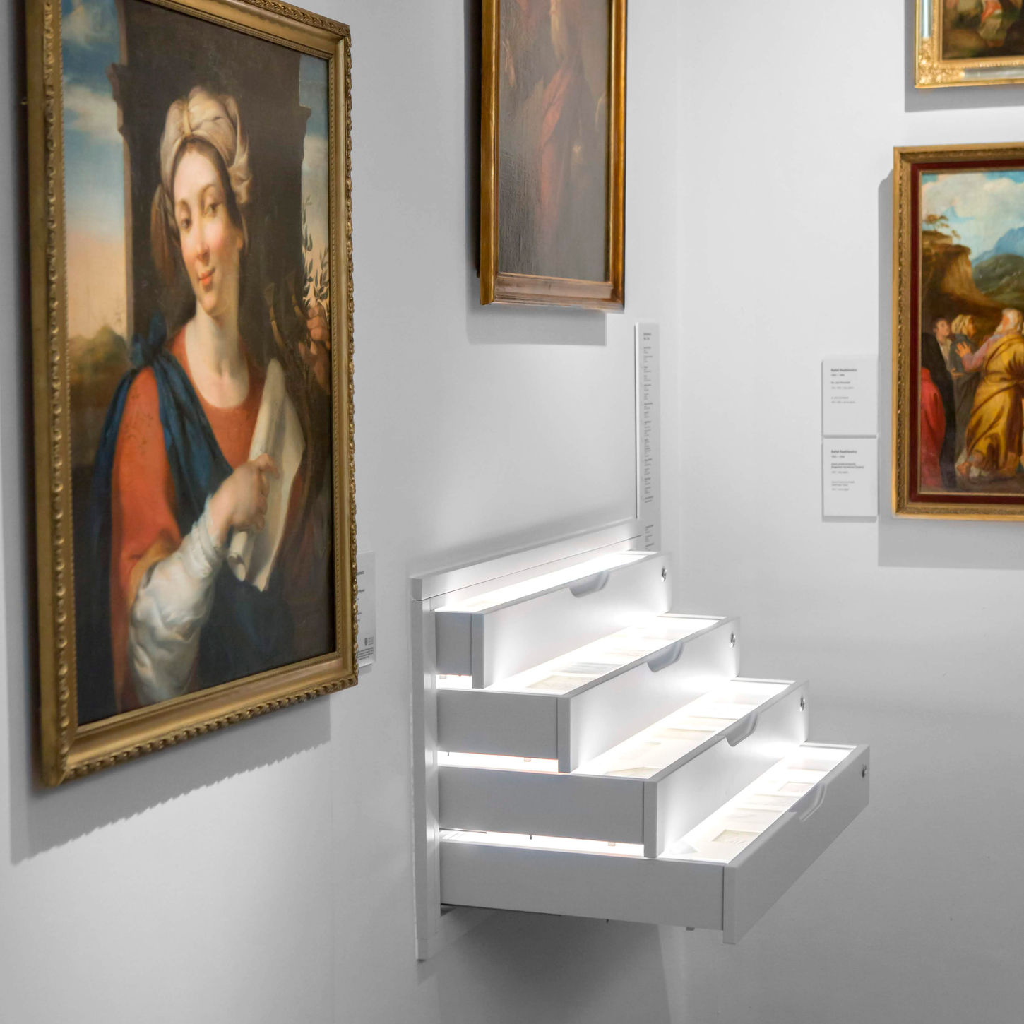 The project was developed in collaboration with architect Paweł Liszewski and included coordination of spatial elements such as display cases and artwork arrangement.
